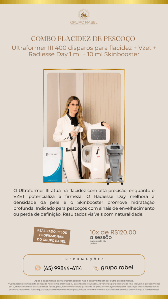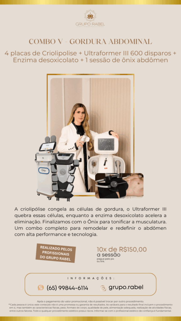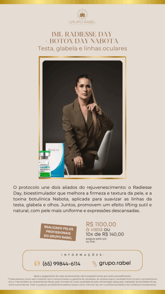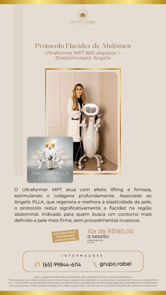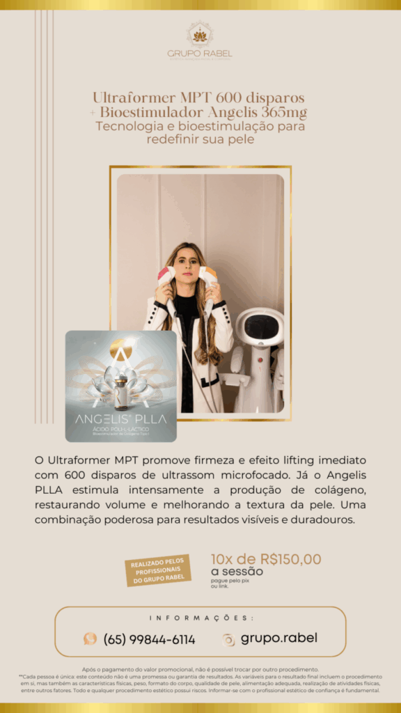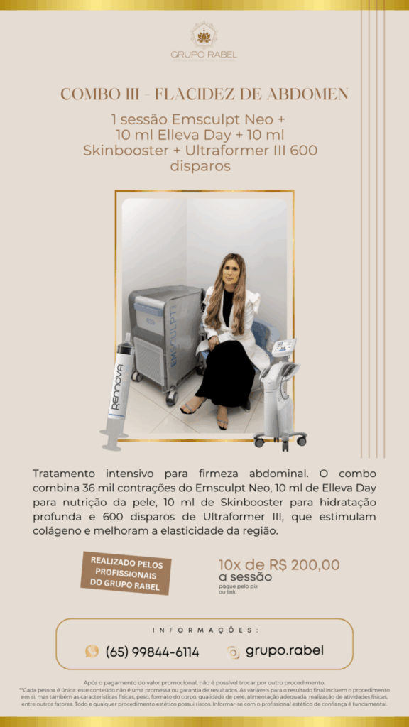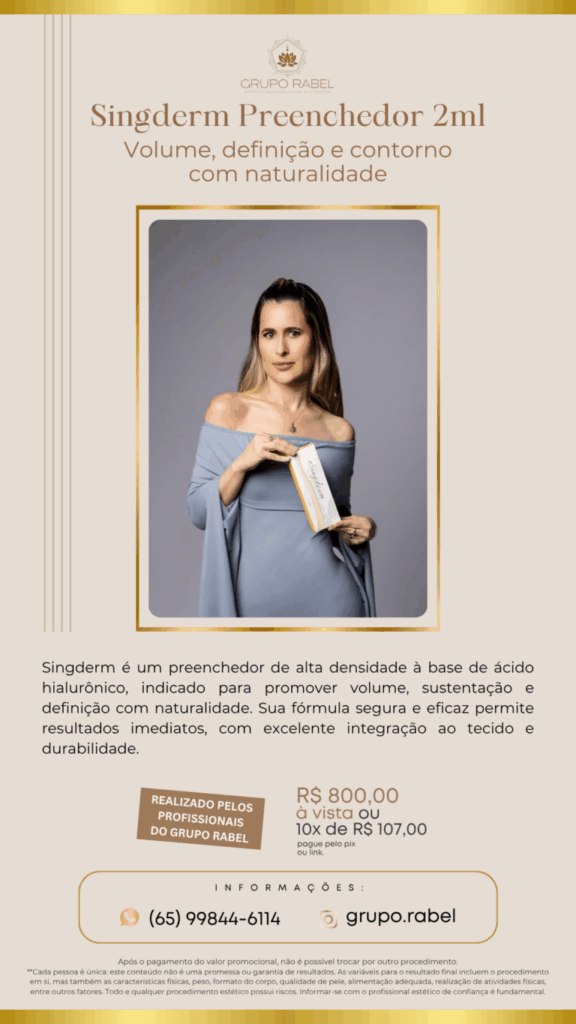 Cada procedimento realizado no Grupo Rabel é baseado em evidências científicas e nas melhores técnicas do mercado. Trabalhamos com bioestimuladores, preenchedores, tecnologia de ponta para rejuvenescimento e remodelação corporal, sempre buscando resultados harmônicos e naturais.