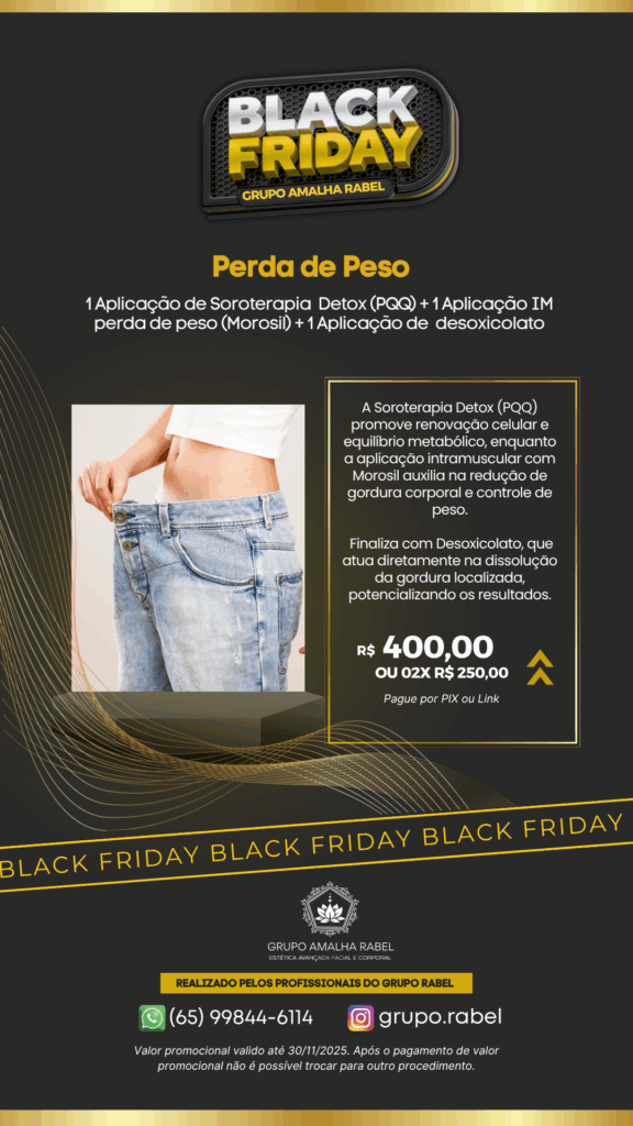 1 Aplicação de Soroterapia Detox (PQQ) + 1 Aplicação IM perda de peso (Morosil) + 1 Aplicação de desoxicolato